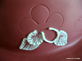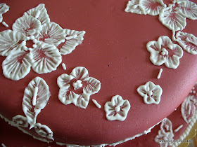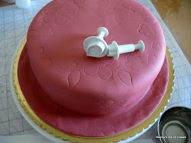 As you can see I used some of my flower cutter to emboss a pattern on my cake, as I wanted to create a symmetrical design.